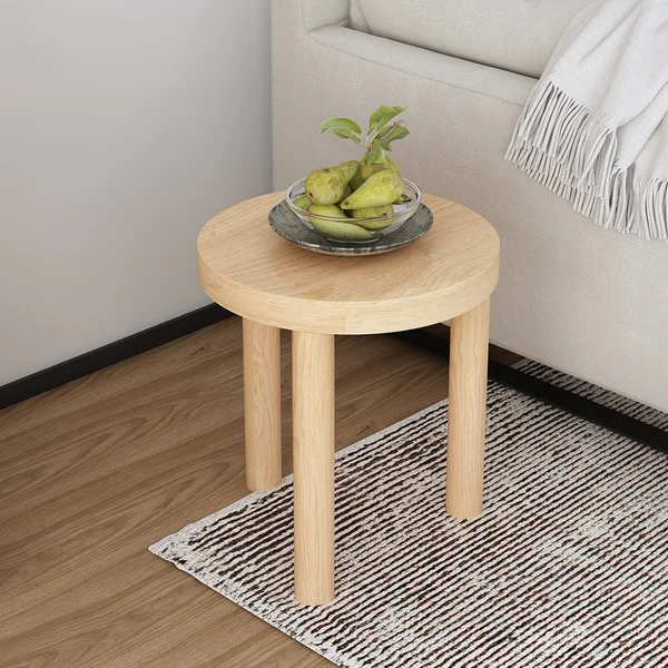 A side table with a modern and simple design, which makes it blend in with other pieces of furniture in the home and adds elegance. Crafted from a pinewood surface founded on 3 slim legs, this end table delivers a clean-lined silhouette and natural material look.