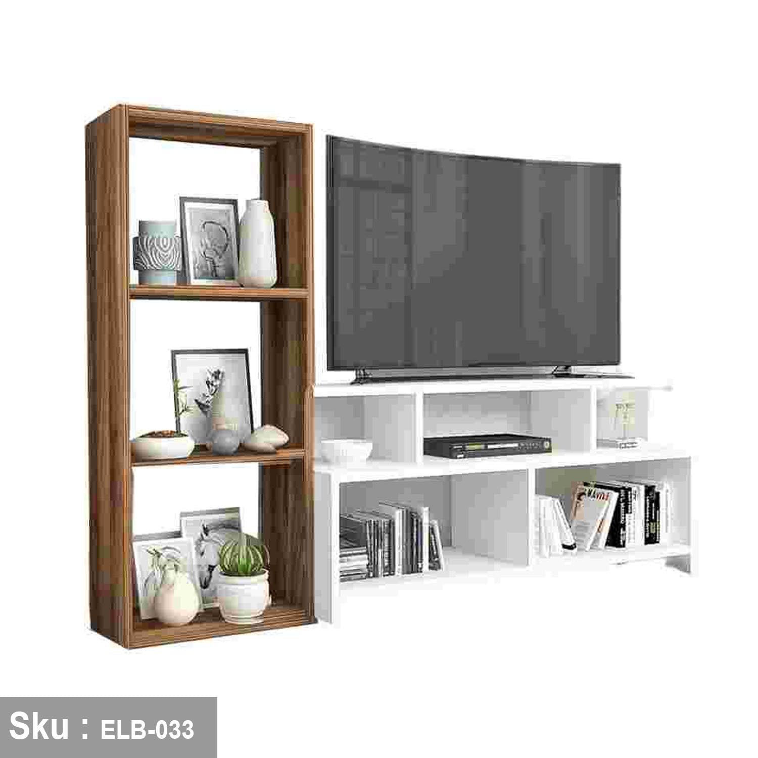 MDF wood and consists of 3 shelves, and a side stand consisting of 2 shelves. High quality