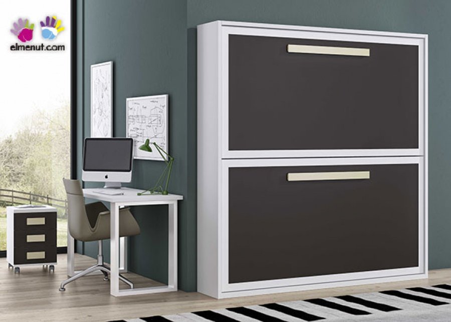 This room corresponds to a Krono model single horizontal folding bed. The bed does not have a bed base, it has a metal frame on a board. It can accommodate a mattress of 90 x 190 cm and 20 cm h. When opened it folds down to 113 cm. Measurements: 113 hx 207 x 34.5 F