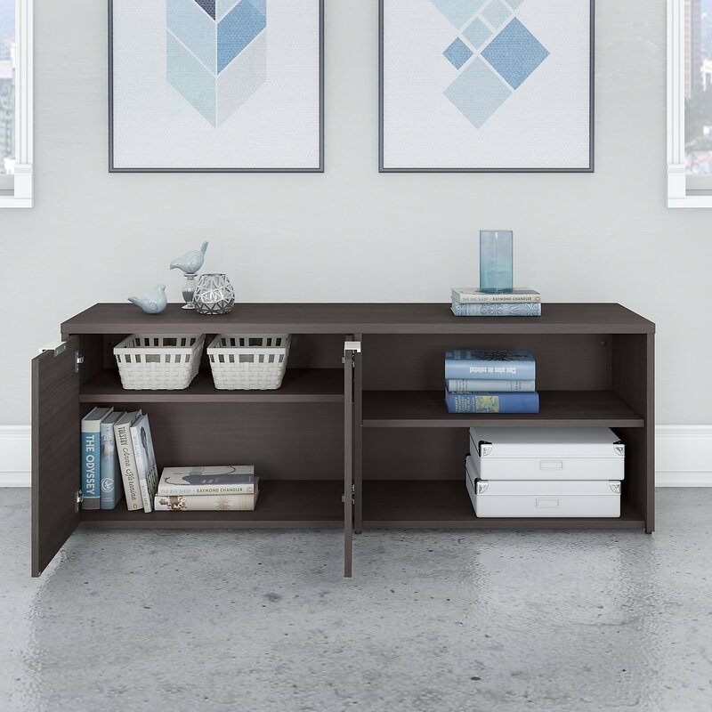 Decorate your home with this elegant piece and enjoy the functional use of it, it allows large space for storage consisting of 2 open shelves and a cabinet with doors.