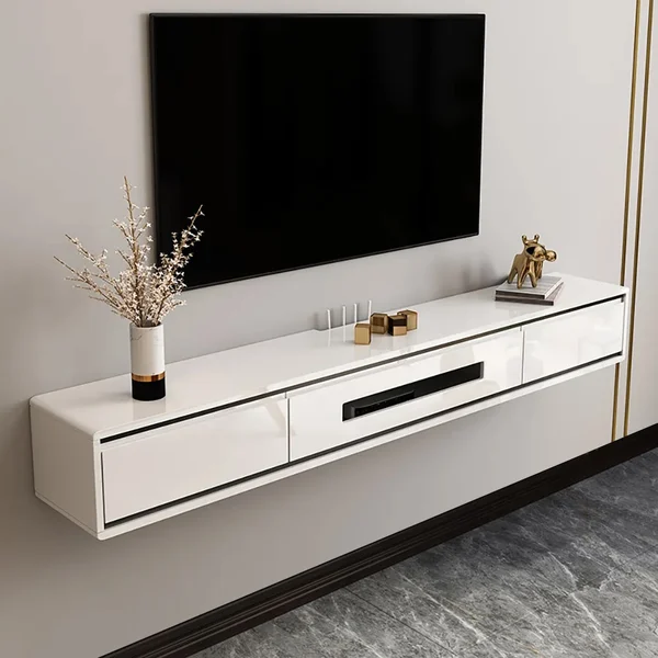 Anchor your entertainment ensemble with this wall-mounted TV stand, both chic and artful. This TV stand brings a Minimalist touch to your space. It provides plenty of space for storing all of your media accessory necessities, practical and stunning.