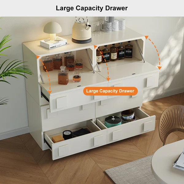 3. Ample Storage: Drop-down storage and 4 pull-out drawers.