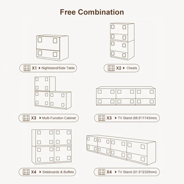 1. Modular Design: Four individual cabinets for flexible configuration.