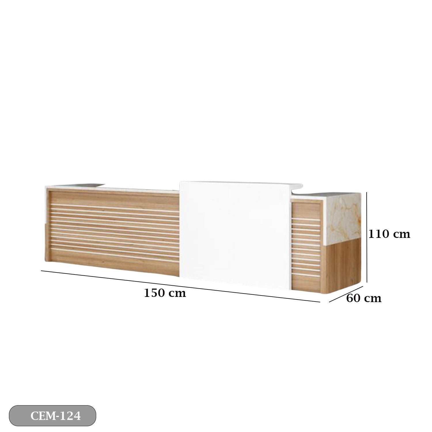An elegant reception counter made of luxurious Spanish MDF wood, featuring a smooth and matte finish that gives it a modern and elegant character. The warm colors of the wood complement its simpdesign lines, providing a professional and attractive look. Its spacious surface has plenty of room for desk tasks, with hidden storage keeping things tidy and organized. Perfect for making a welcoming first impression in any modern office environment.
