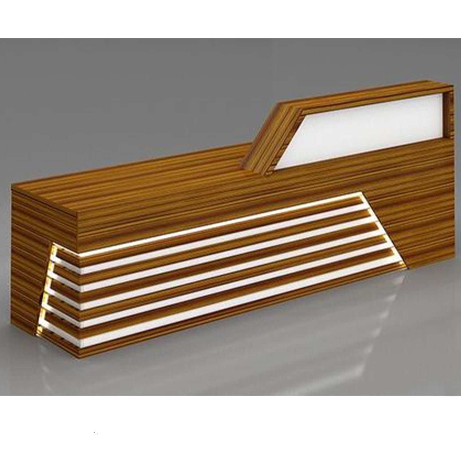 An elegant reception counter made of luxurious Spanish MDF wood, featuring a smooth and matte finish that gives it a modern and elegant character. The warm colors of the wood complement its simpdesign lines, providing a professional and attractive look. Its spacious surface has plenty of room for desk tasks, with hidden storage keeping things tidy and organized. Perfect for making a welcoming first impression in any modern office environment.