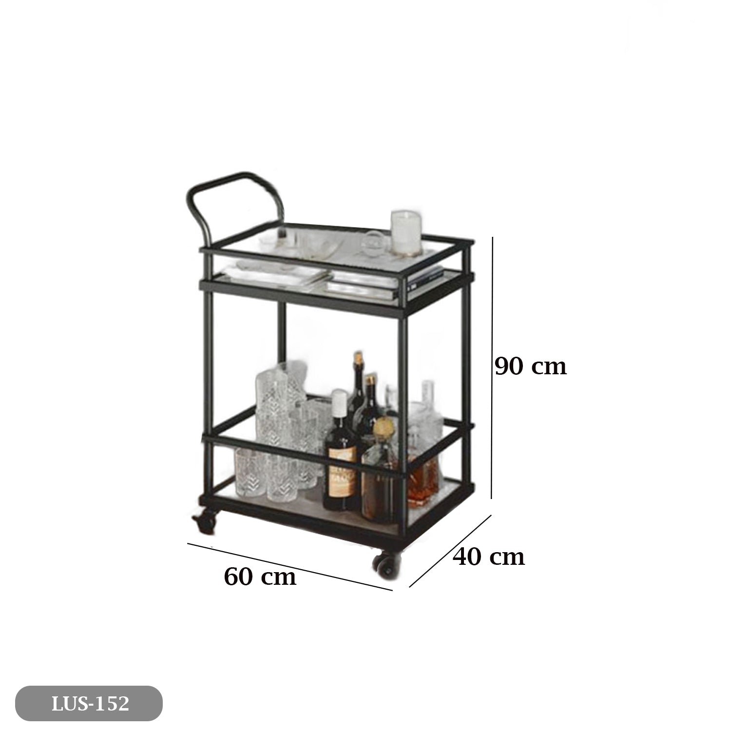 Steel trolley made of iron and clear glass, combining elegance and practical functionality. The iron frame provides durability and strength, while the clear glass adds a modern touch and natural light. It includes several shelves, making it perfect for storing drinks or serving snacks at events. Its modern design makes it suitable for any living room or kitchen, and it can be easily moved thanks to the wheels at the bottom, providing ease of use and mobility. This trolley is an ideal choice for adding a touch of elegance and comfort to your space.