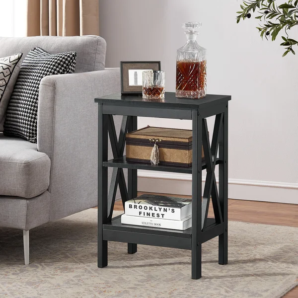 This side table with its elegance, adds an artistic touch to your home, As it combines exquisite design with modern functionality ,It adds elegance to any room you decide to place in it , It is elegant and practical, and is of great value throughout the house. Also , it has three tiers open shelf table with a middle and bottom shelf maximizes your storage space.