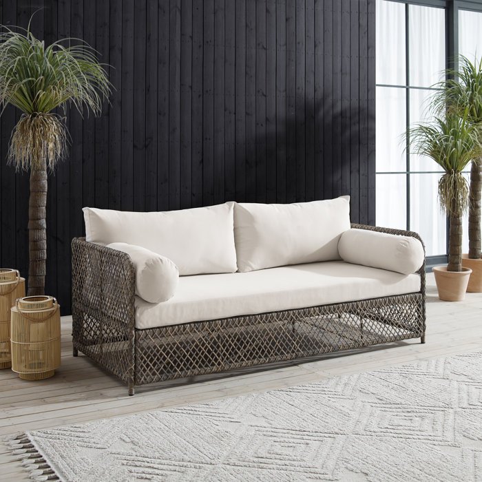 Turn your backyard into a modern island retreat with the elegant Granite Bay Sofa. With a deep, cushioned bench seat and unique bolster throw pillows, this coastal outdoor sofa is prime real estate for patio relaxation. The beautiful handwoven wicker is both weather-resistant and stylish, creating an elevated look for your outdoor space.