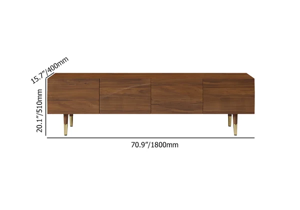 A distinctively designed TV table that combines a Mid-century and modern look. It is designed differently, as it gives the place elegance and a historical touch. It is made of natural wood and a golden leg.