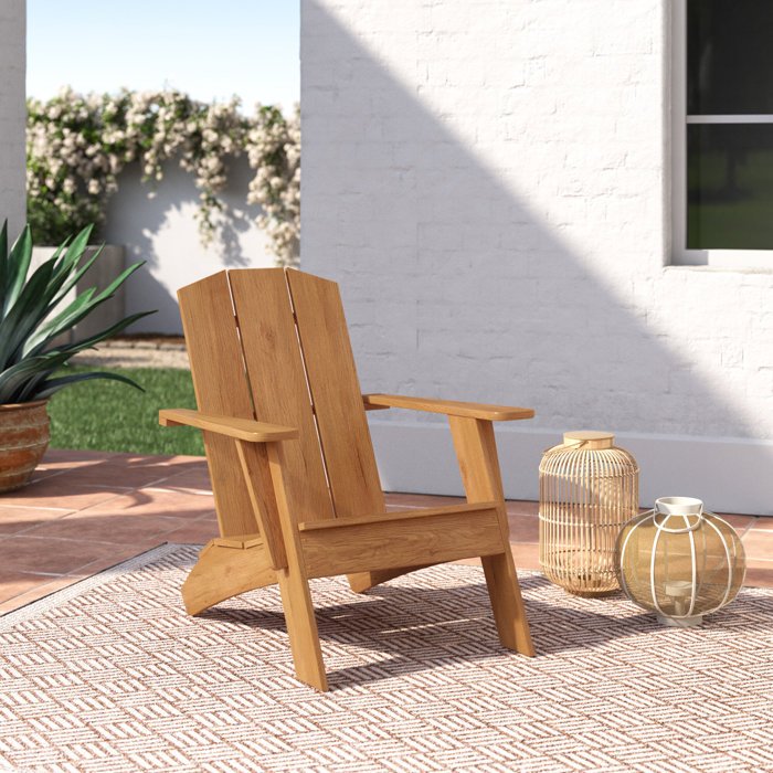 This Adirondack chair offers a modern take on a traditional, time-tested design. It’s made from kiln-dried solid teak wood with stainless steel hardware and a signature deep, sloping seat and an elegantly pitched back. Ideal for gathering around a fire pit, enjoying the view from the porch, or adding relaxing vacation vibes all year round, this versatile chair is easy to incorporate into any space that could use a little extra relaxation. Plus, this chair is resistant to rotting, insects, weathering, and has a slat-style design that lets rain pass through.