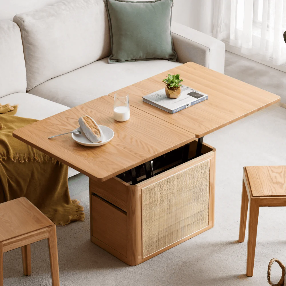 - It is characterized by the fact that it can be used as a coffee table, dining table, or also a desk.