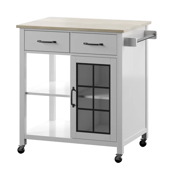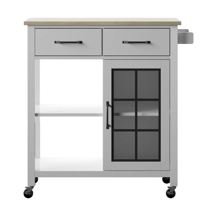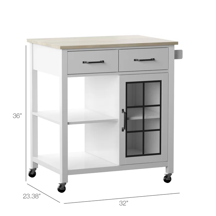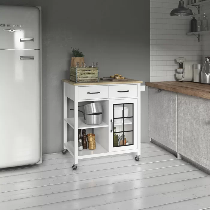 - The cart allows a large storage space like two drawers, a cabinet, and two open shelves for organizing your appliances and utensils.