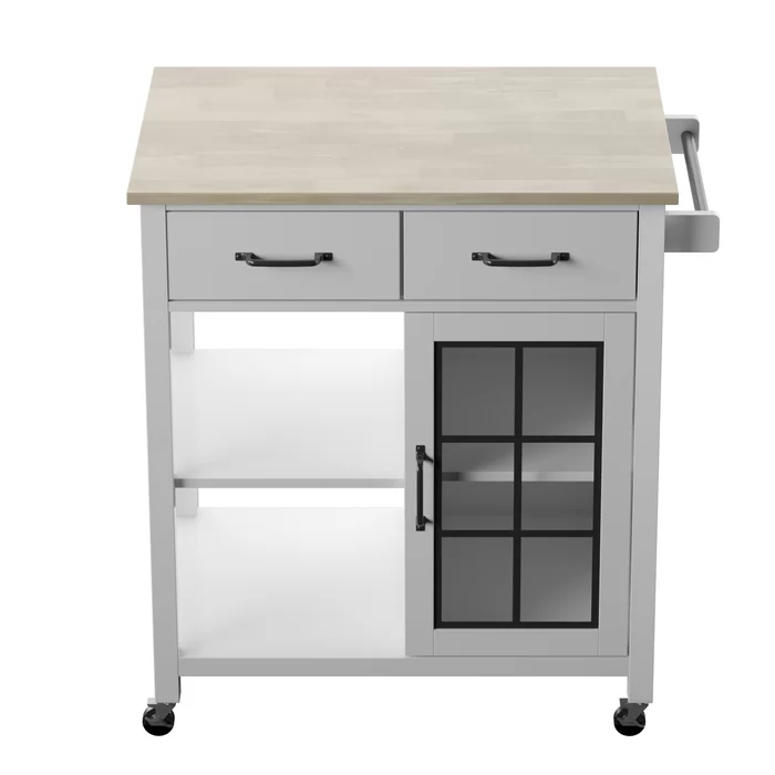- The rolling kitchen cart has a towel rack for fast and easy cleaning up.