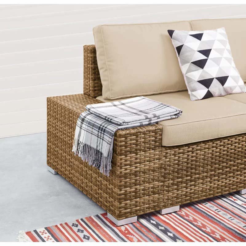 Create a comfortabcorner in your outdoor area. The modern design with the treated pure rattan structure of this piece of furniture is sure to decorate your garden, patio, or terrace. The set consists of 2 sofas and a table, ensuring you have a side space for your drink.
