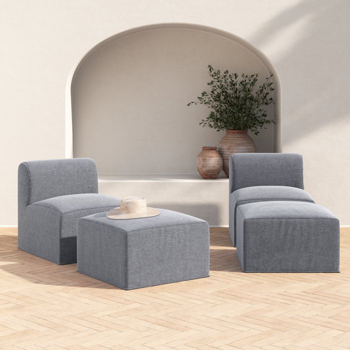 Your outdoor space: Elevated. Our set of two lounge chairs with matching ottomans is created for those who truly know how to relax. It’s made-to-order in your choice of performance fabric. Plus, the sturdy metal frames are designed to hold up against damage caused by water and UV rays, and machine-washable covers make maintenance a breeze. Love this look? Shop the entire collection.