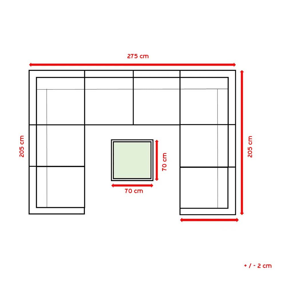 Sofa dimensions: length 260 cm – width 205 cm – height 80 cm – seat depth 75 cm