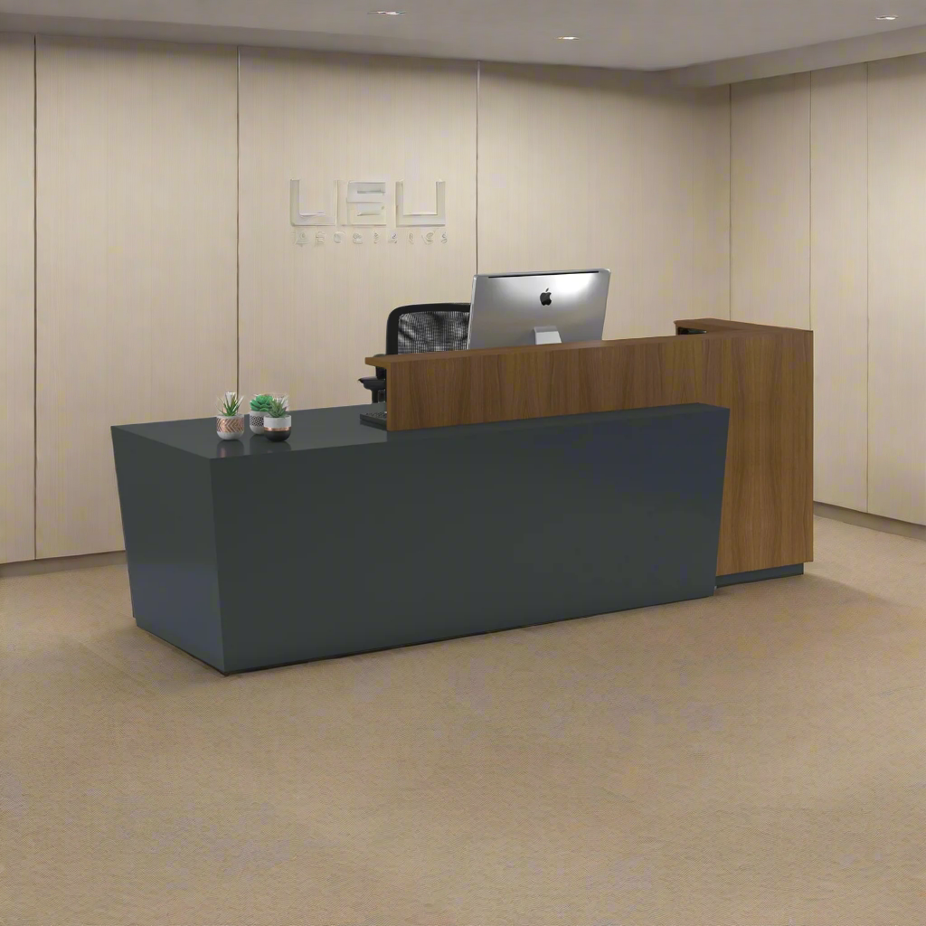 An elegant reception counter made of luxurious Spanish MDF wood, featuring a smooth and matte finish that gives it a modern and elegant character. The warm colors of the wood complement its simpdesign lines, providing a professional and attractive look. Its spacious surface has plenty of room for desk tasks, with hidden storage keeping things tidy and organized. Perfect for making a welcoming first impression in any modern office environment.