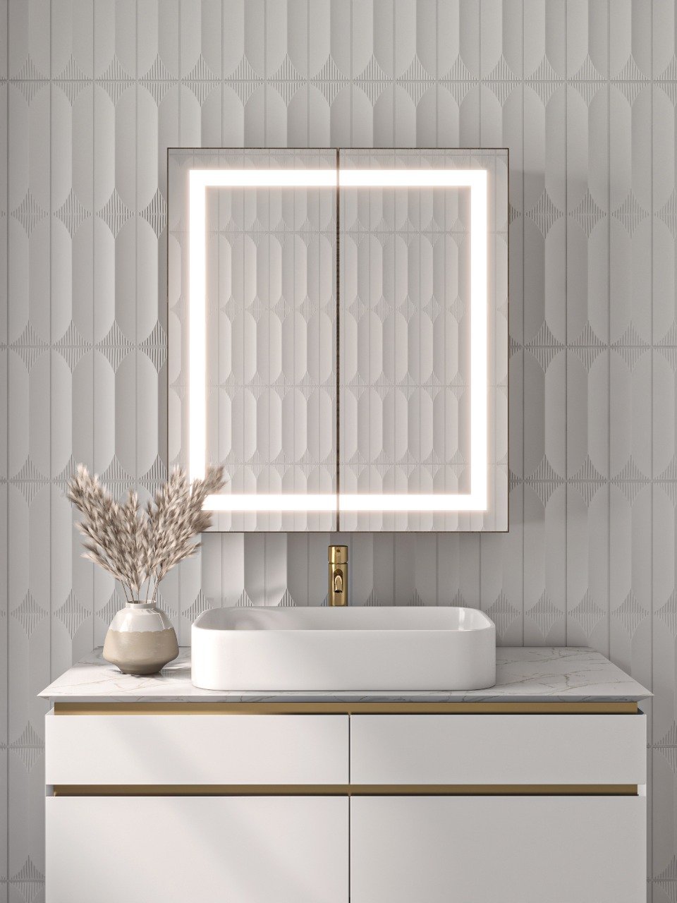 Don’t sacrifice the bathroom space with many unnecessary items, enjoy the Multifunctional features of this mirror cabinet, in addition to the storage space, the led light frame is an elegant addition.