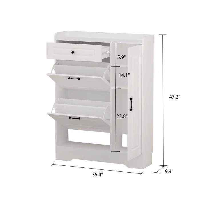 - The cabinet has adjustable shelves for managing the storage according to the shoes style.
