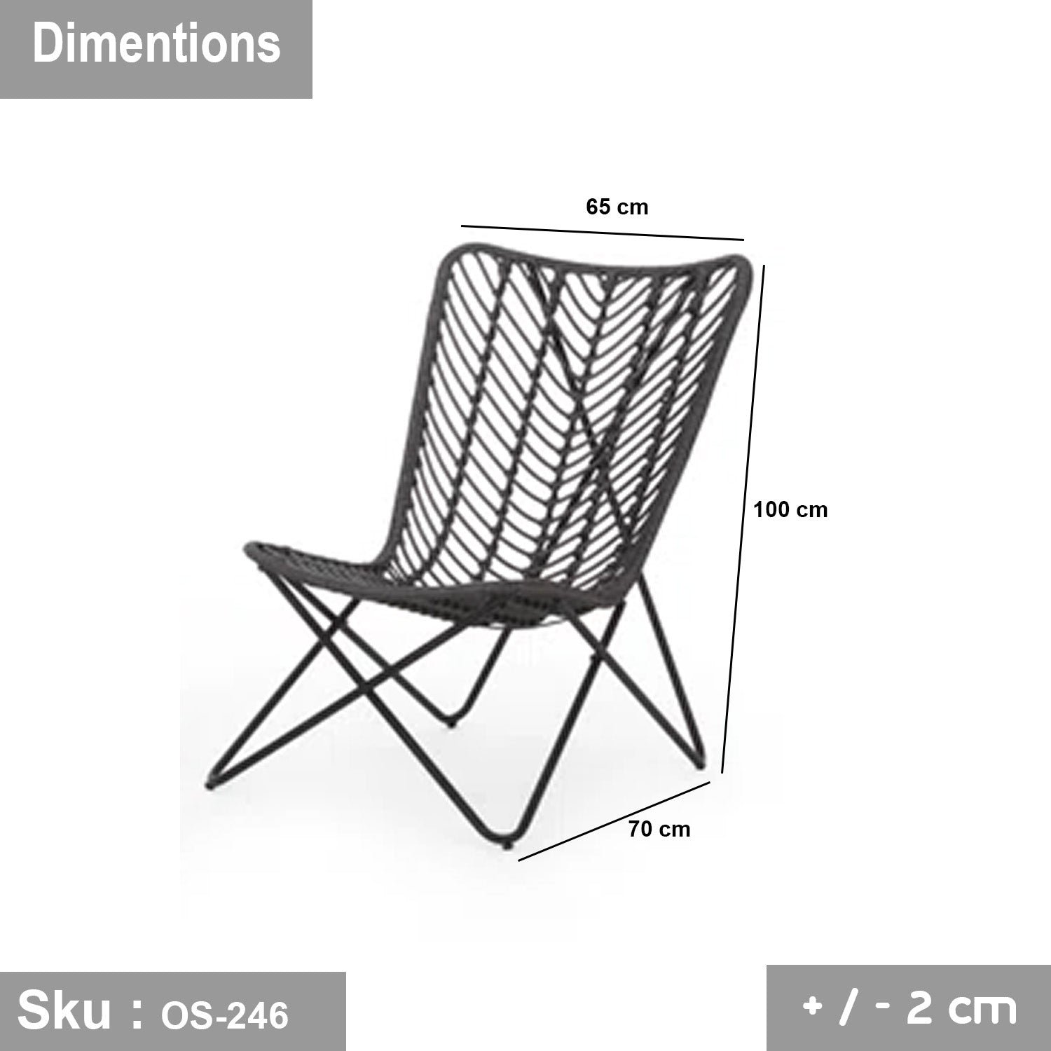 Chair: Width 65 cm – Depth 70 cm – Height 100 cm
