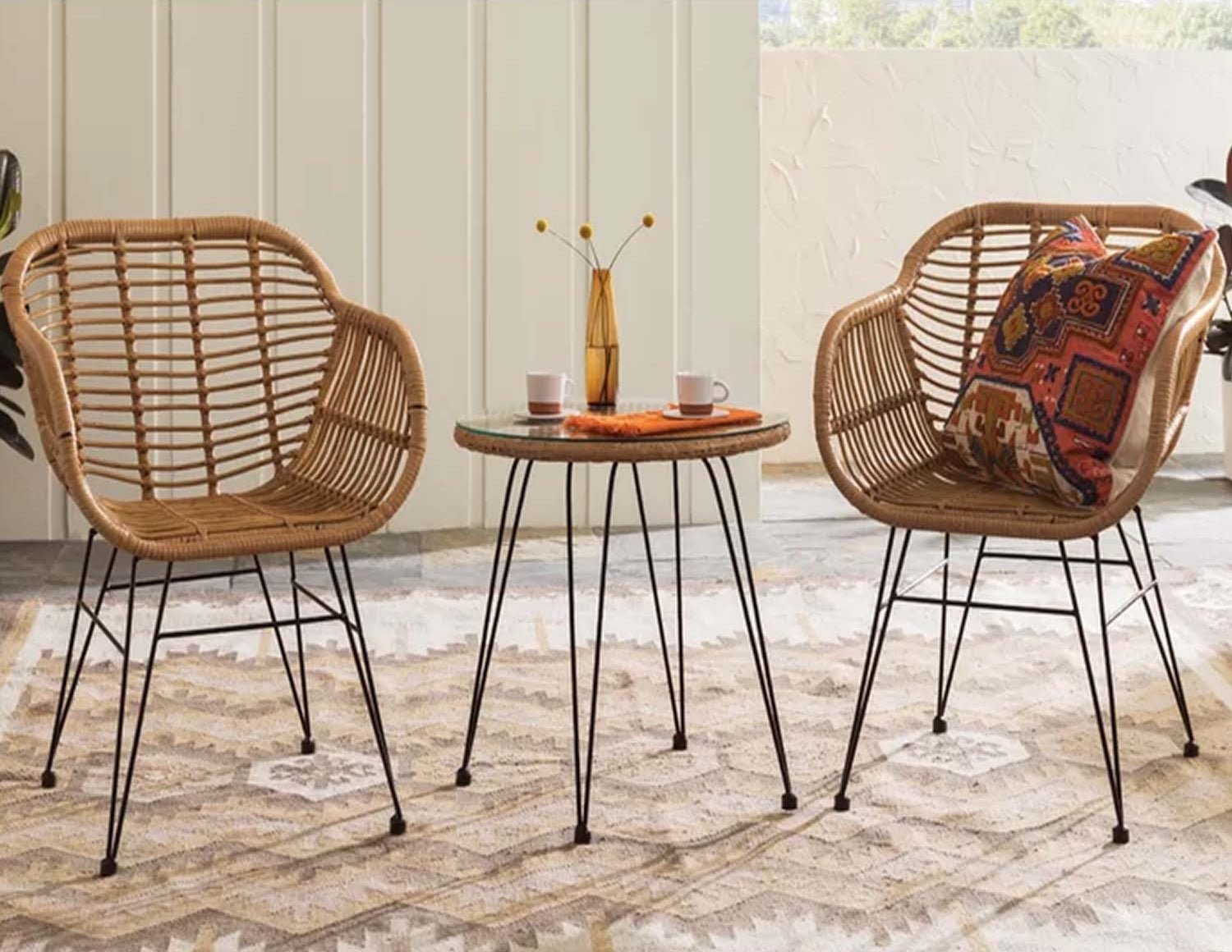 Enjoy a unique experience when you get a set of 2 rattan chairs and a table from Oscar Rattan, made from the finest types of rattan. Enjoy the unique design aesthetic and high quality that guarantees durability and sustainability. Get a product that adds a modern and natural touch to the decor of your home or garden.