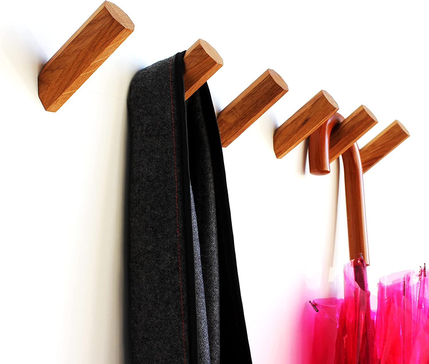 - Minimal and elegant design ? with a geometric design, our eye-catching wooden coat hook securely holds all your belongings from children’s wardrobe, towels, jewellery to decoration without slipping or falling. Everyone (also your guests!) will love and admire the beautiful design of these natural and modern wall hooks
