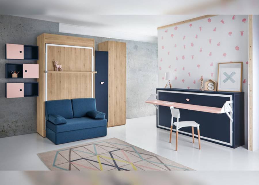 Be the first to review “Shared youth bedroom with two folding beds; one with a folding desk and the other with a sofa” Cancel reply
