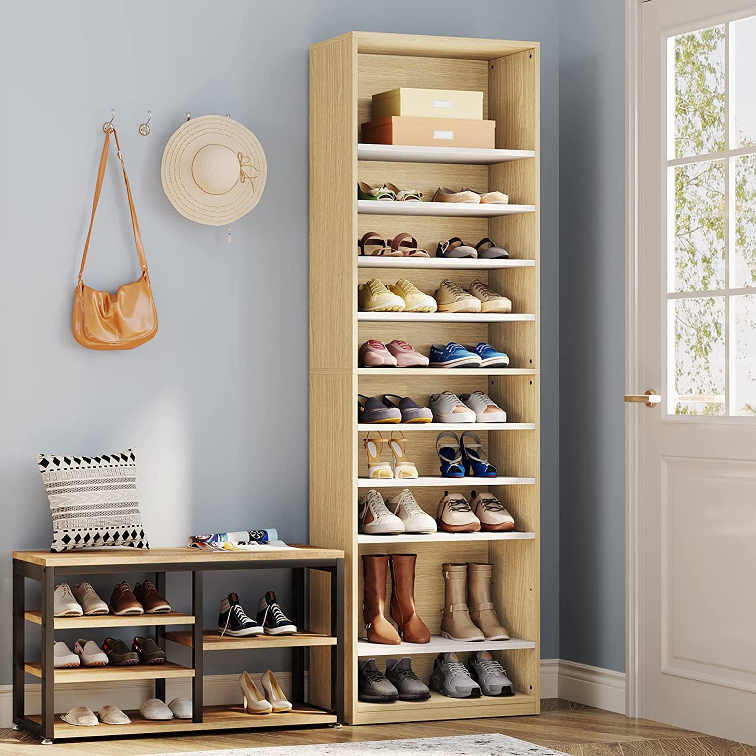 Space-Saving Design ? Measuring 19.7? L x 11.8? D x 70.9? H, this freestanding shoe cabinet offers a practical and space-saving storage solution to store your shoe collection. With its narrow, tall design, this shoe storage cabinet fits into any tight space in your home, making it perfect for entryways, hallways or small closets.