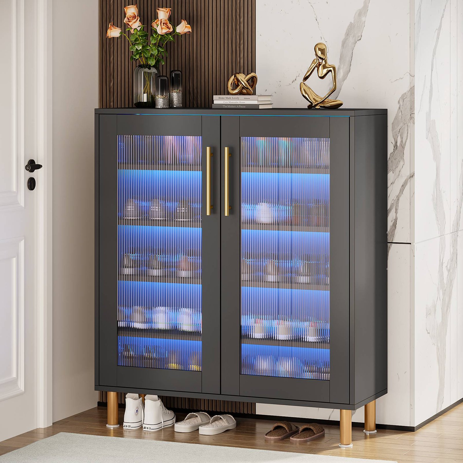 Elegant Entryway Decor ? Crafted with a wooden board and acrylic door, this shoe storage with simple colors and texture. Sleek white with golden metal handles and legs, adds a warm touch and some modern flair, to be decorative enough to suit your entryway.
