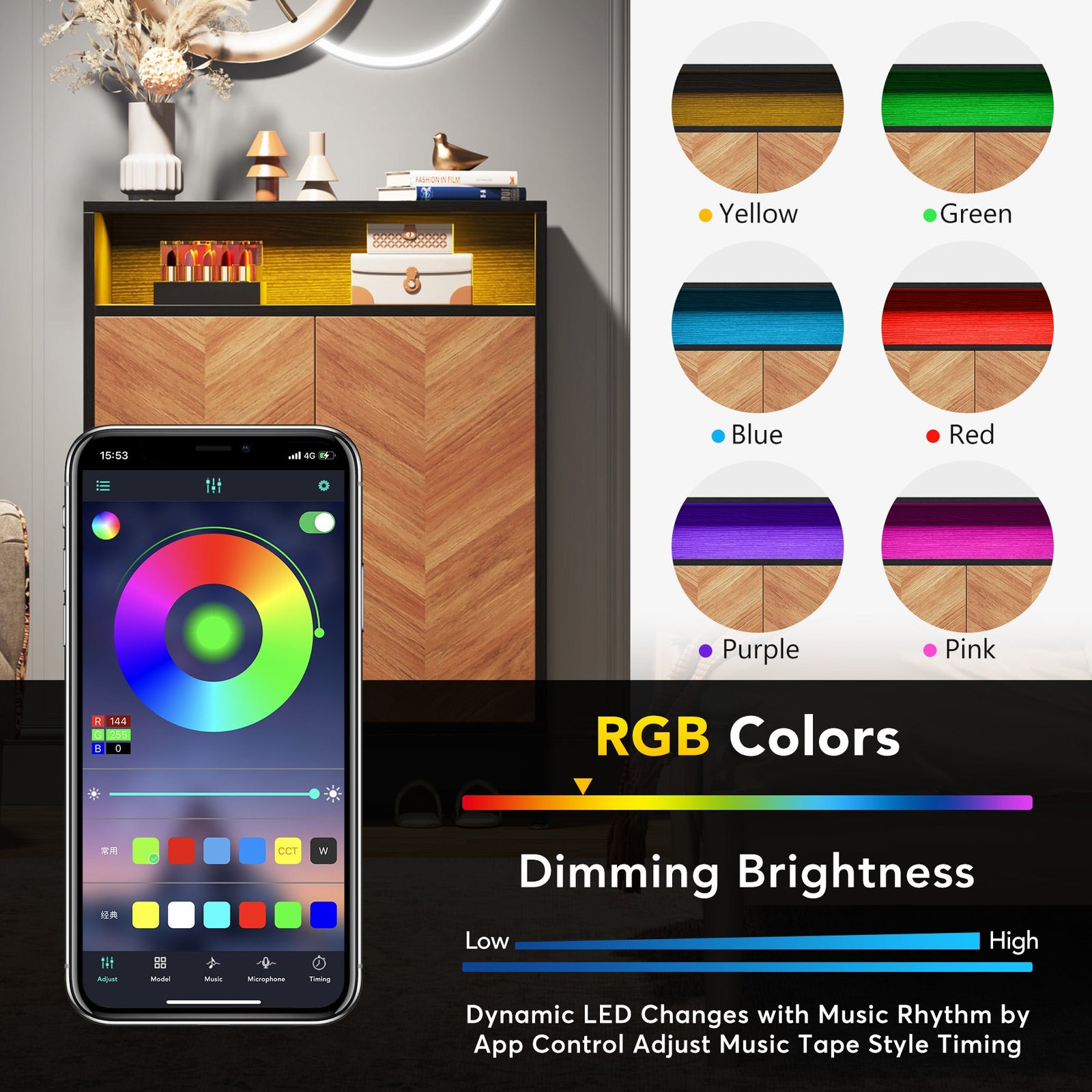 SUITABLE FOR ANY ROOM SPACE ? Overall sizes: 27.5? W x13.7? D x 35.4? H, this 2-door shoe storage cabinet is perfect for placing in the entryway, hallway, living room, or porch, keep all your shoes organized at your fingertips. Gold door handles lend a cool geometric look that complements stylish ?v? shaped wood grain, making this rustic shoe cabinet a neat and beautiful finish, and looks great in many different home styles.
