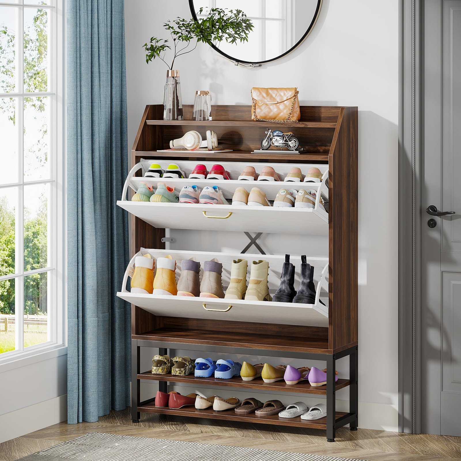 Shoe Cabinet, Freestanding Shoe Organizer with 2 Flip Drawers & Shelves