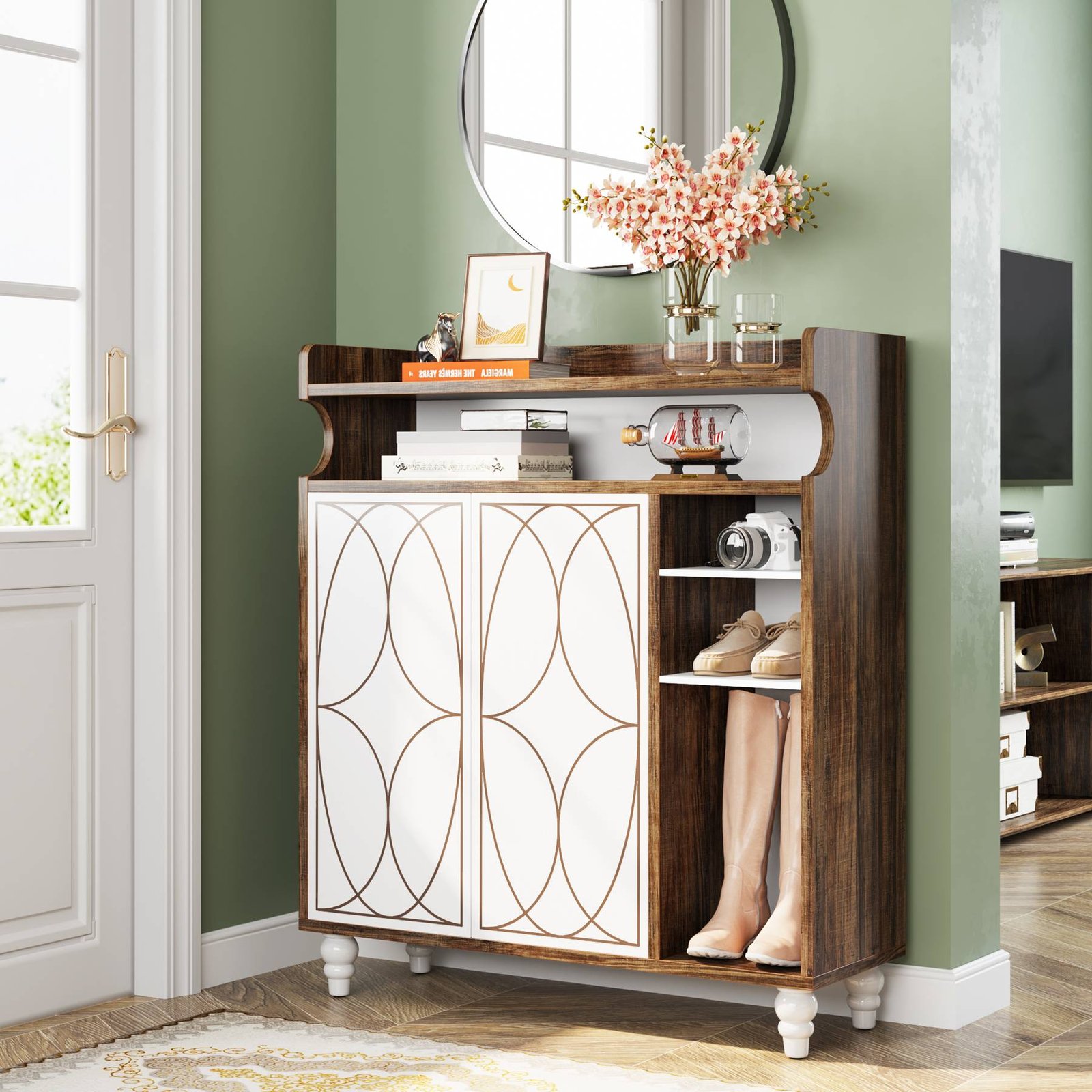 Shoe Cabinet, Shoe Organizer with Doors & Adjustable Shelves