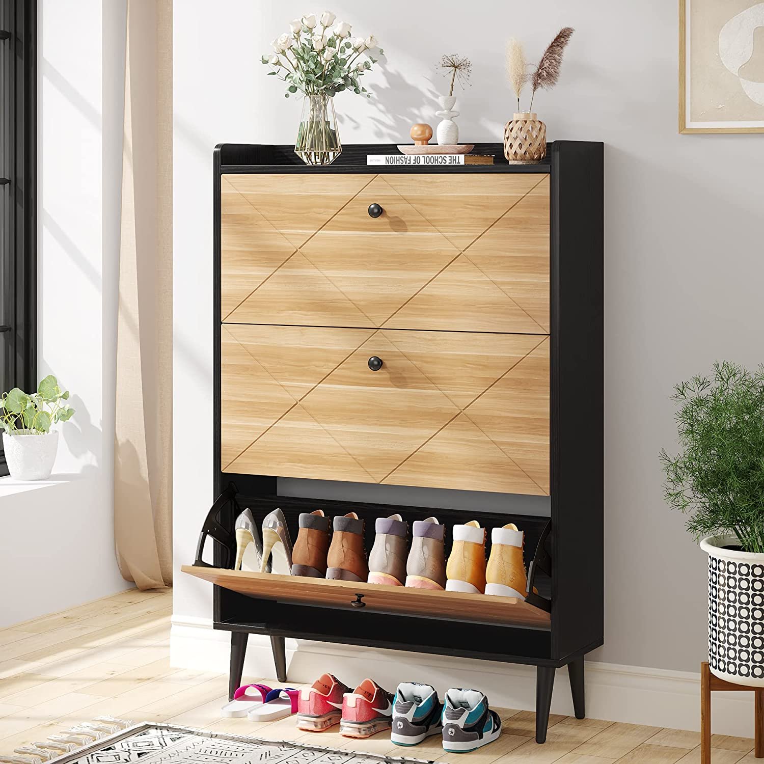 Shoe Cabinet, Shoe Rack Organizer with 3 Flip Drawers for Entryway