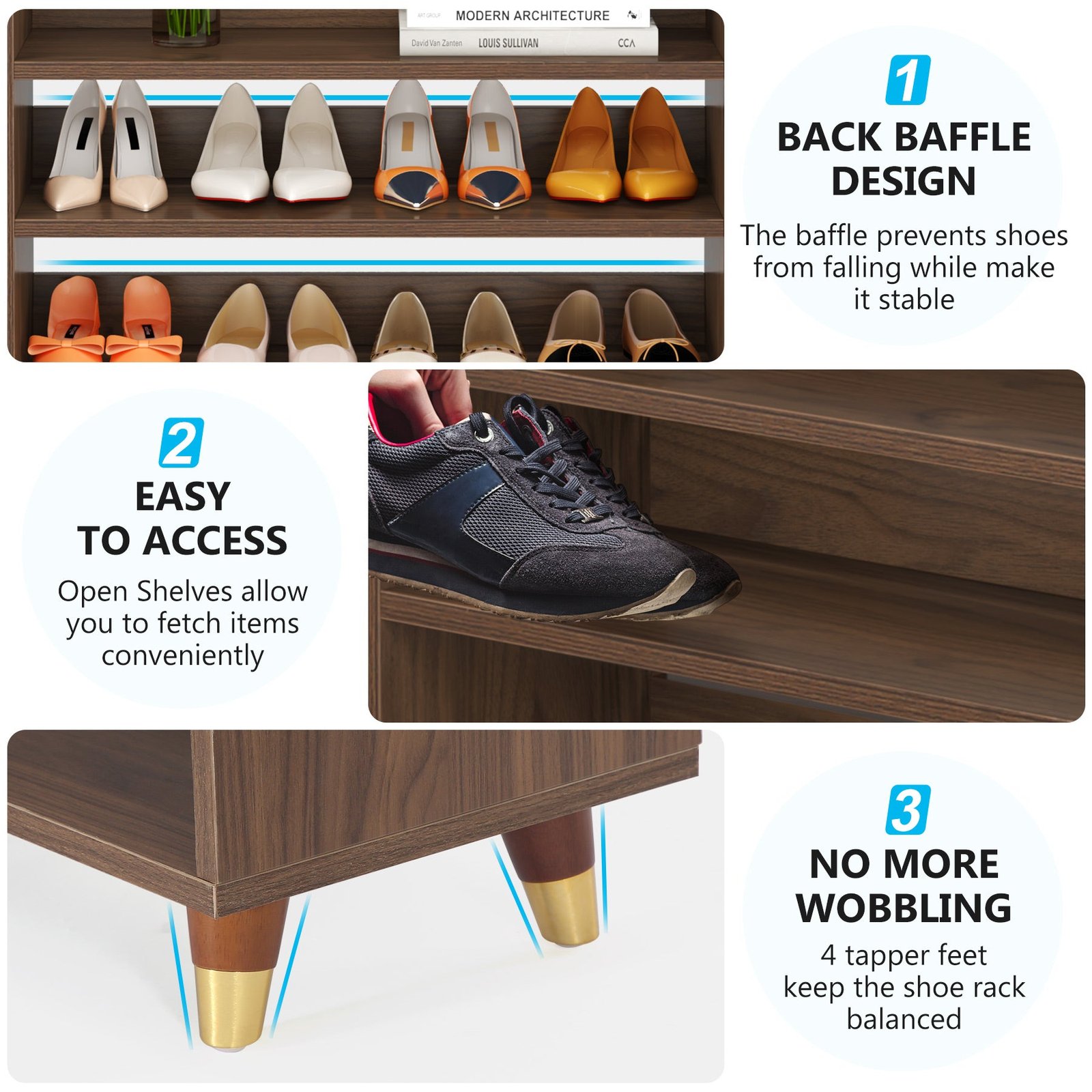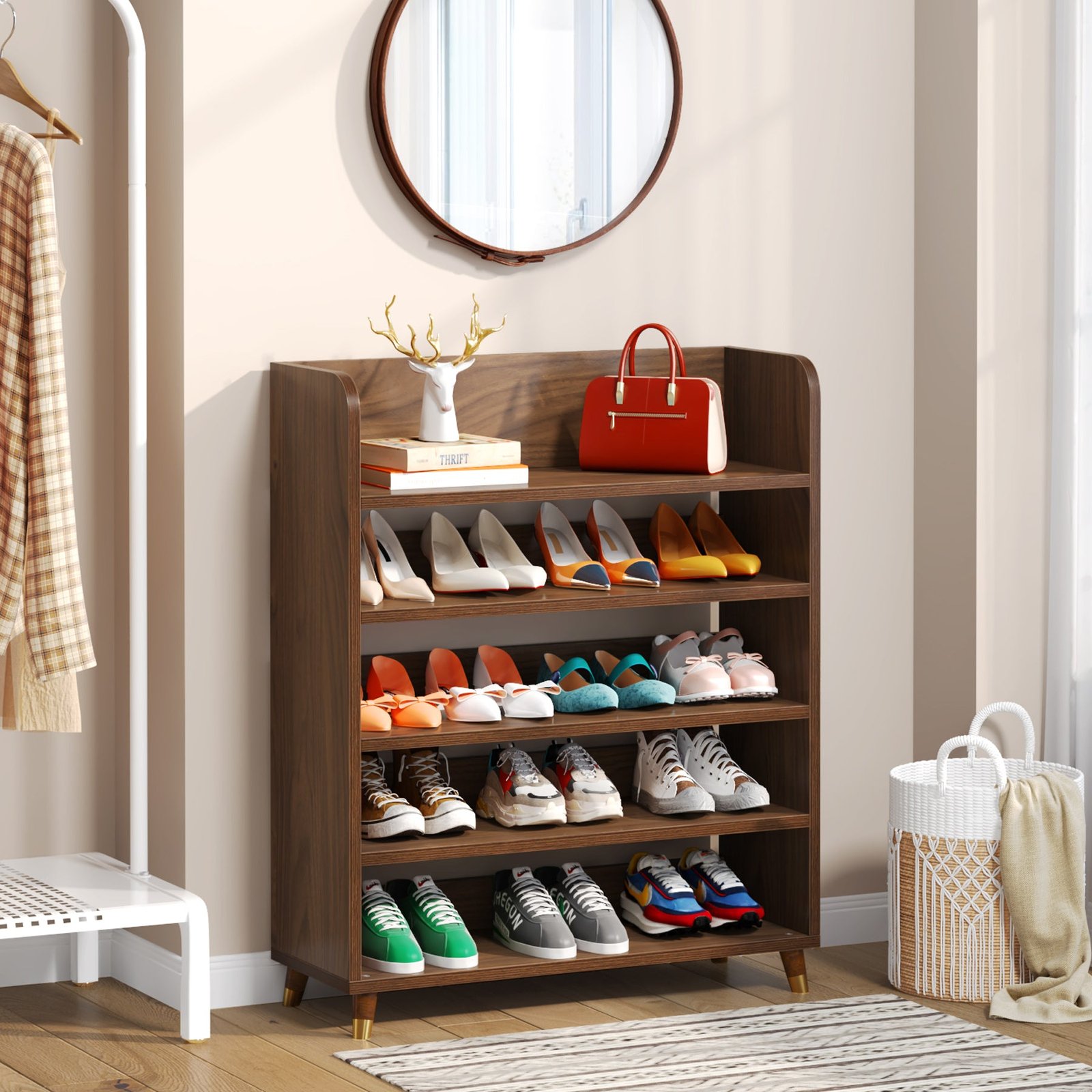 Industrial Shoe Rack ? Increase more confidence to invite your family or friends to your home by having a shoe rack. Rustic brown colors exude a charming flair. On the back, its frame has on a semi-open design that brings a light and breezy look to your space. It is what you need to decorate your house!