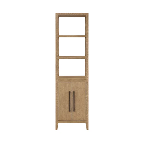 3. This cabinet also has two closed doors with black metal handles to store the rest of your personal items and towels.