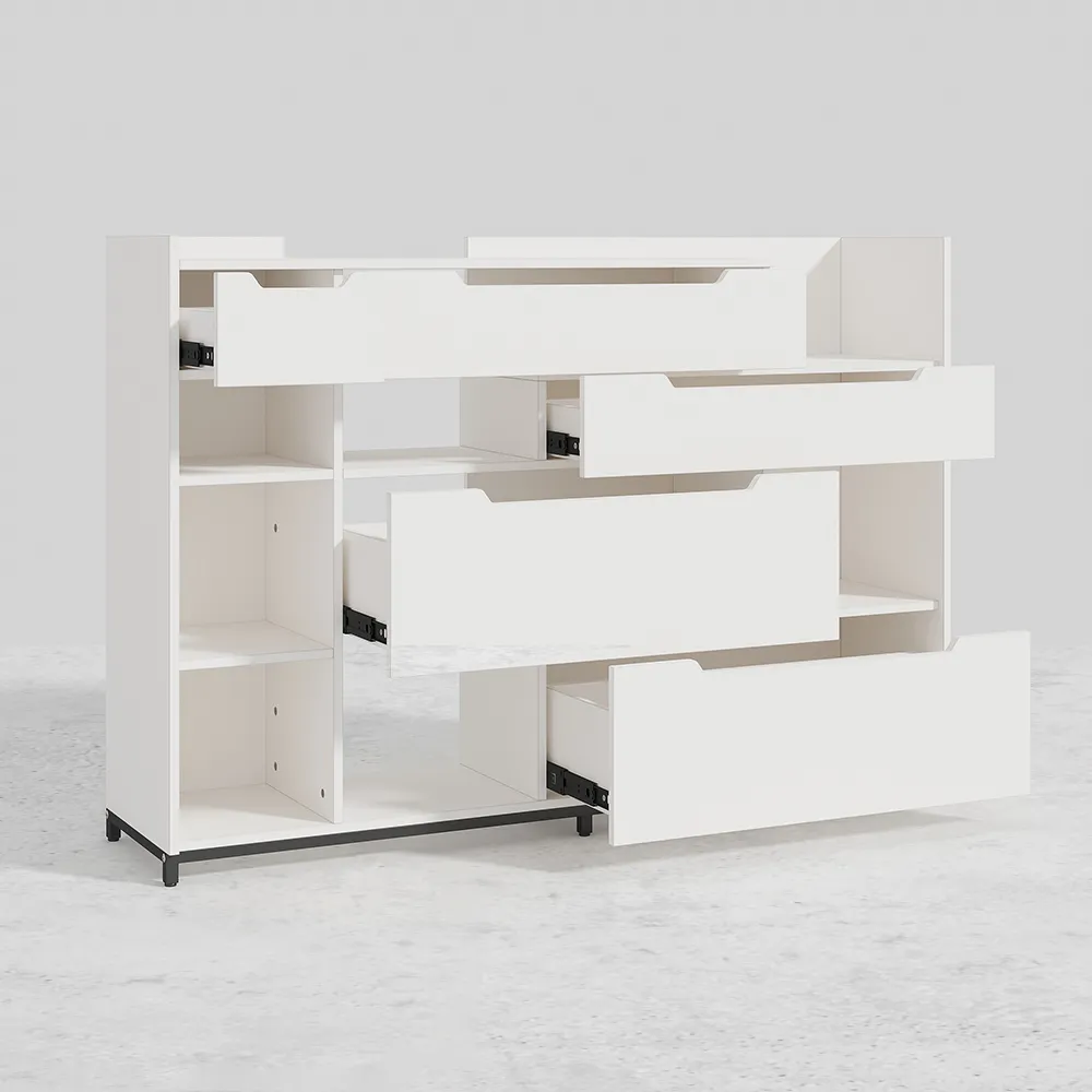 - Ample storage space with 5 drawers and other 7 open shelves.
