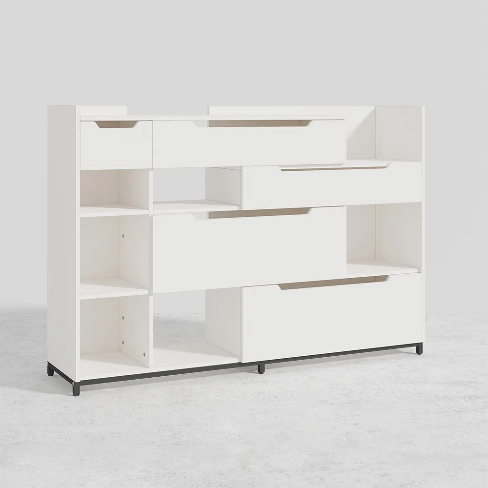 This shoe storage cabinet is designed to keep your footwear organized and easily accessible. With five drawers and open shelves, it offers a variety of storage options to accommodate different types of shoes.