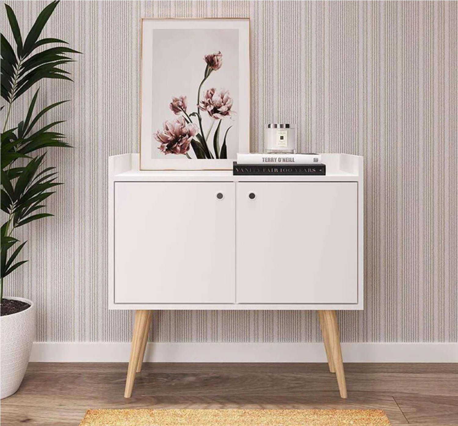 Oscar Rattan MDF wood coffee corner with a melamine layer, featuring a modern and durable design with rattan touches that add a unique aesthetic. Provides the perfect space for preparing and serving drinks, with a scratch- and moisture-resistant surface, making it a practical and stylish choice for any corner of the home