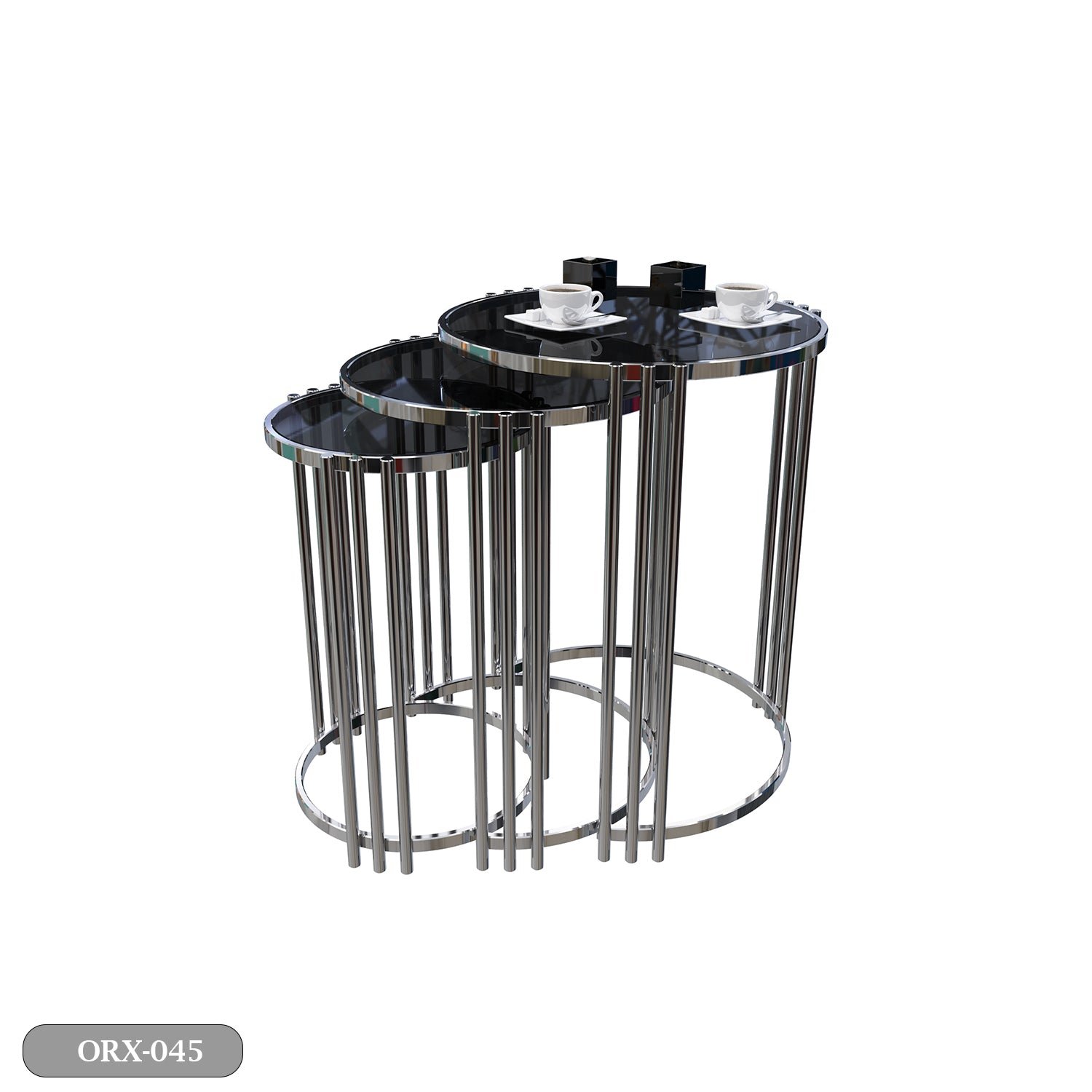 Oscar Rattan side table with a modern and elegant design, made of durable stainless steel. It is characterized by its small size, suitable for placing next to the sofa or bed, with a glossy surface that reflects light and adds a touch of luxury to the space. Its simple and elegant design makes it ideal for use in modern interior spaces, whether to hold books, drinks, or as a decorative piece that adds appeal to the place.