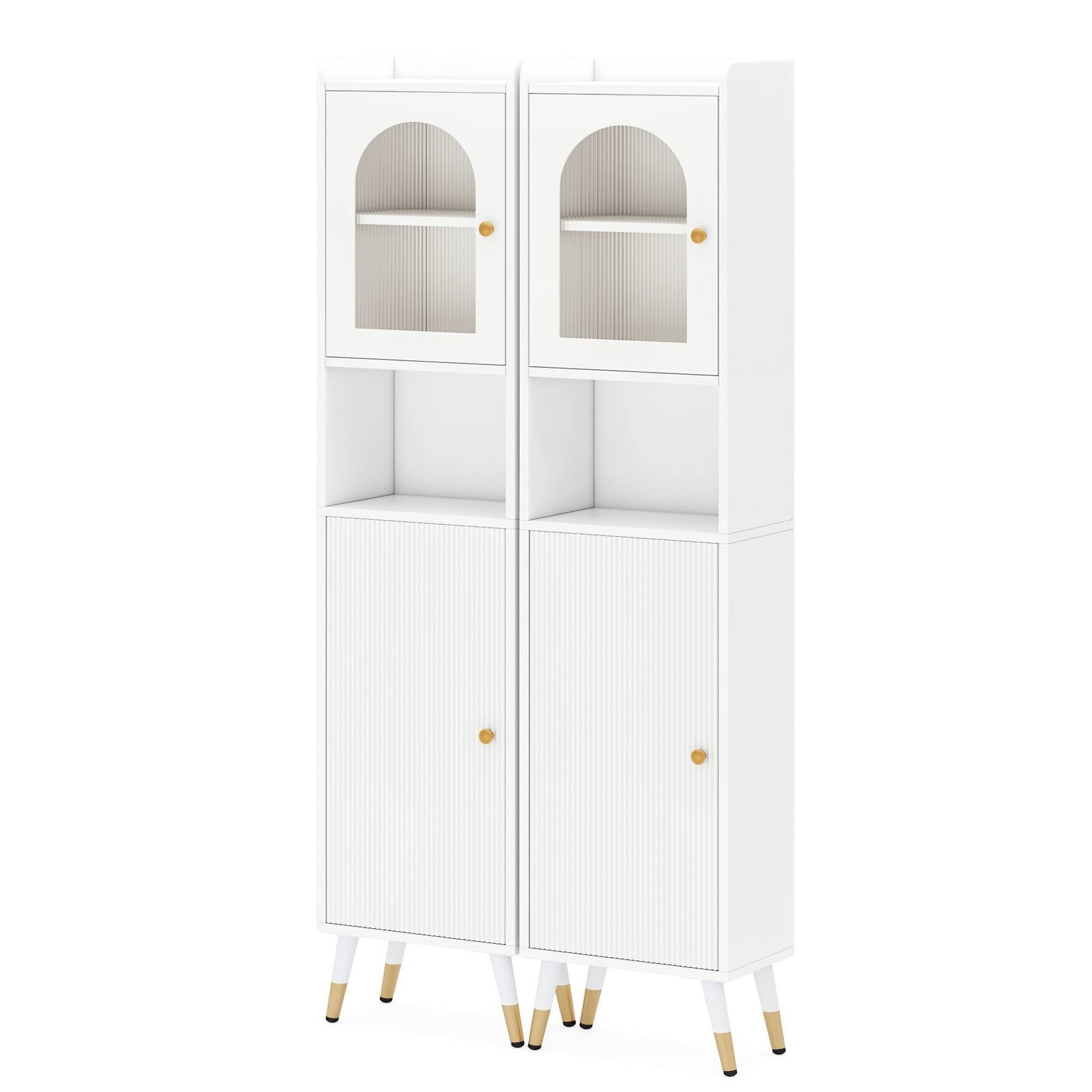 Crafted to Last ? Built with 0.59? thick high-quality environmentally premium MDF, this modern white cabinet features a solid structure for remarkable stability, durability, and bearing capacity. All boards are coated with waterproof varnish to improve anti-scratch, heat-resistant, and easy cleaning performance.
