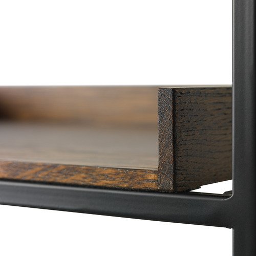 Make the most of vertical space in your home with this tall bookshelf. The smart design is supplied with four layers of shelving – with two being moveable horizontally along the metal frame – and a cupboard in the centre. The piece suits most interior styles.
