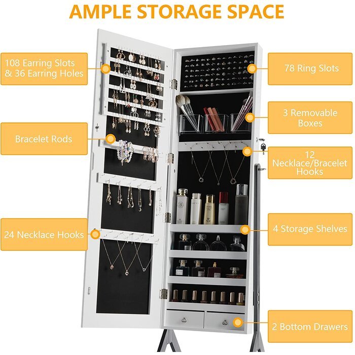 Taulix isn?t just a decorative full-length mirror, it is a large storage cabinet to tuck away your accessories and jewelry. It has four wheels for easy moving from one place to another.