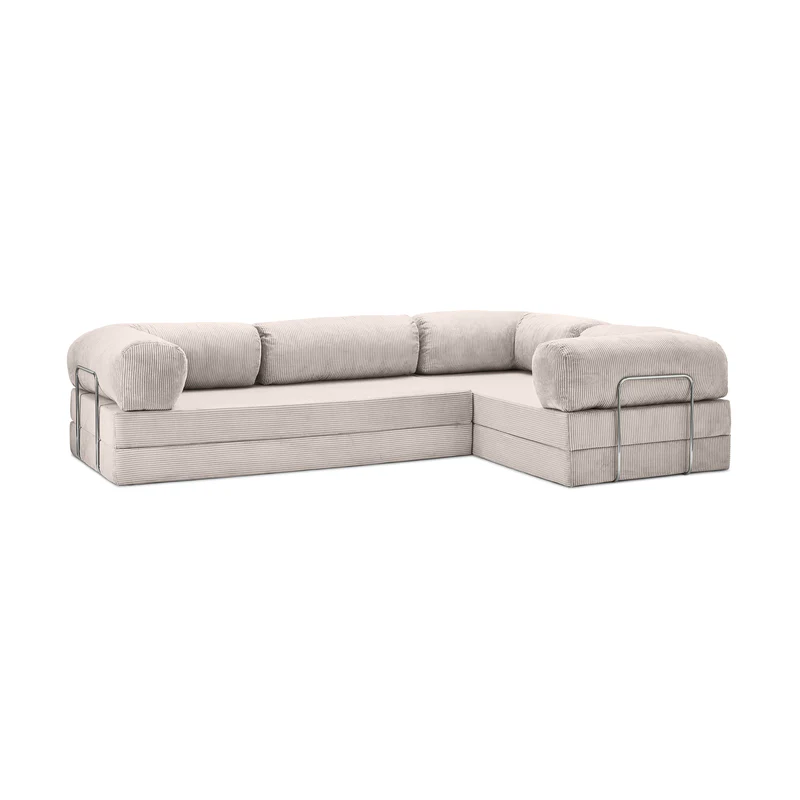 Open Style: You’ll get 4 mattresses, 2 L-shaped cushions and 2 straight cushions. This creates a chaise like effect on one side of the sofa. Included with this order are three large and one small metal brace, which are also mobile.