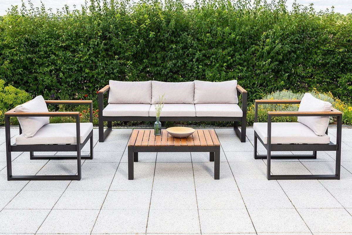 Get an elegant outdoor garden set consisting of a 3-seater sofa, 2 chairs, and a table to feel renewed in your garden. It is made of iron with 1mm electrostatic paint treated against rust and weather factors, and make your garden always prepared for you and your guests.