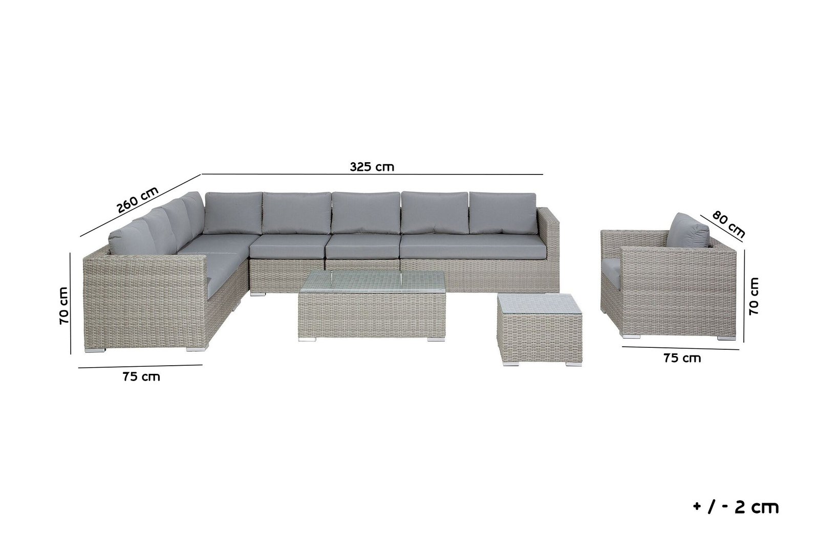 Corner dimensions: width 325 cm – depth 260 cm – height 70 cm