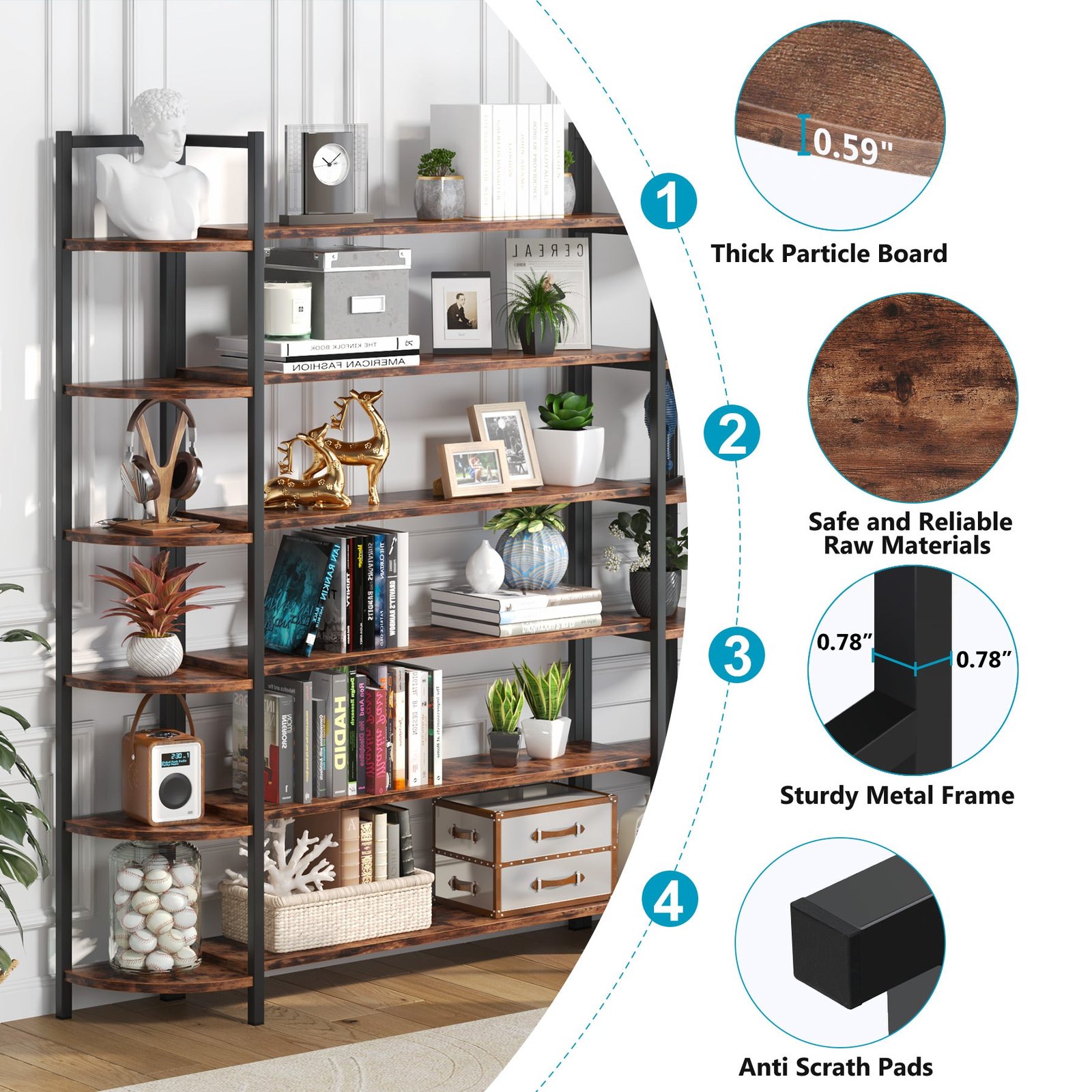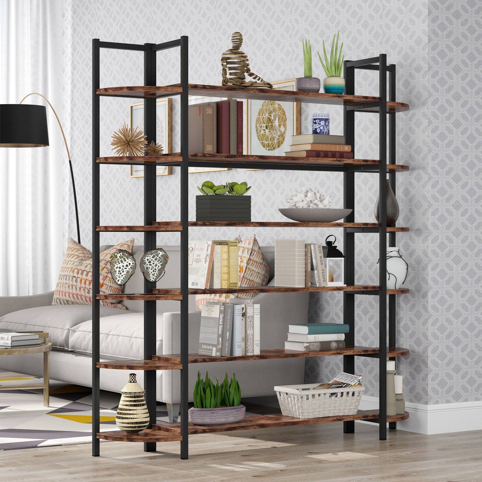 LARGE STORAGE SPACE ? Wide space for showcase 70? Hx 12? Dx 62? W, 6 spacious shelves bookcase with 62 inches long made it an ideal organization for all of your storage and display needs.