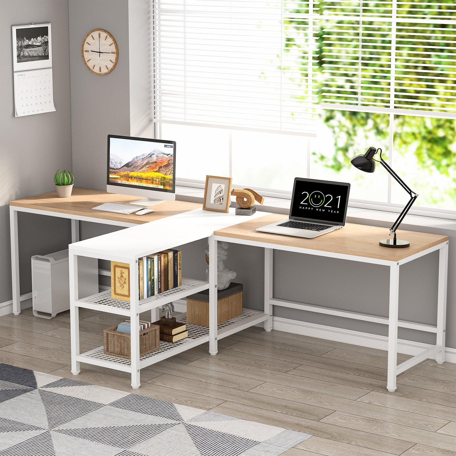 Two-Person Desk ? Designed for two people, this 94.5-inch double desk allows you to easily share resources and communicate with your family or partners side by side, and independent design can prevent distractions or excessive work sharing.
