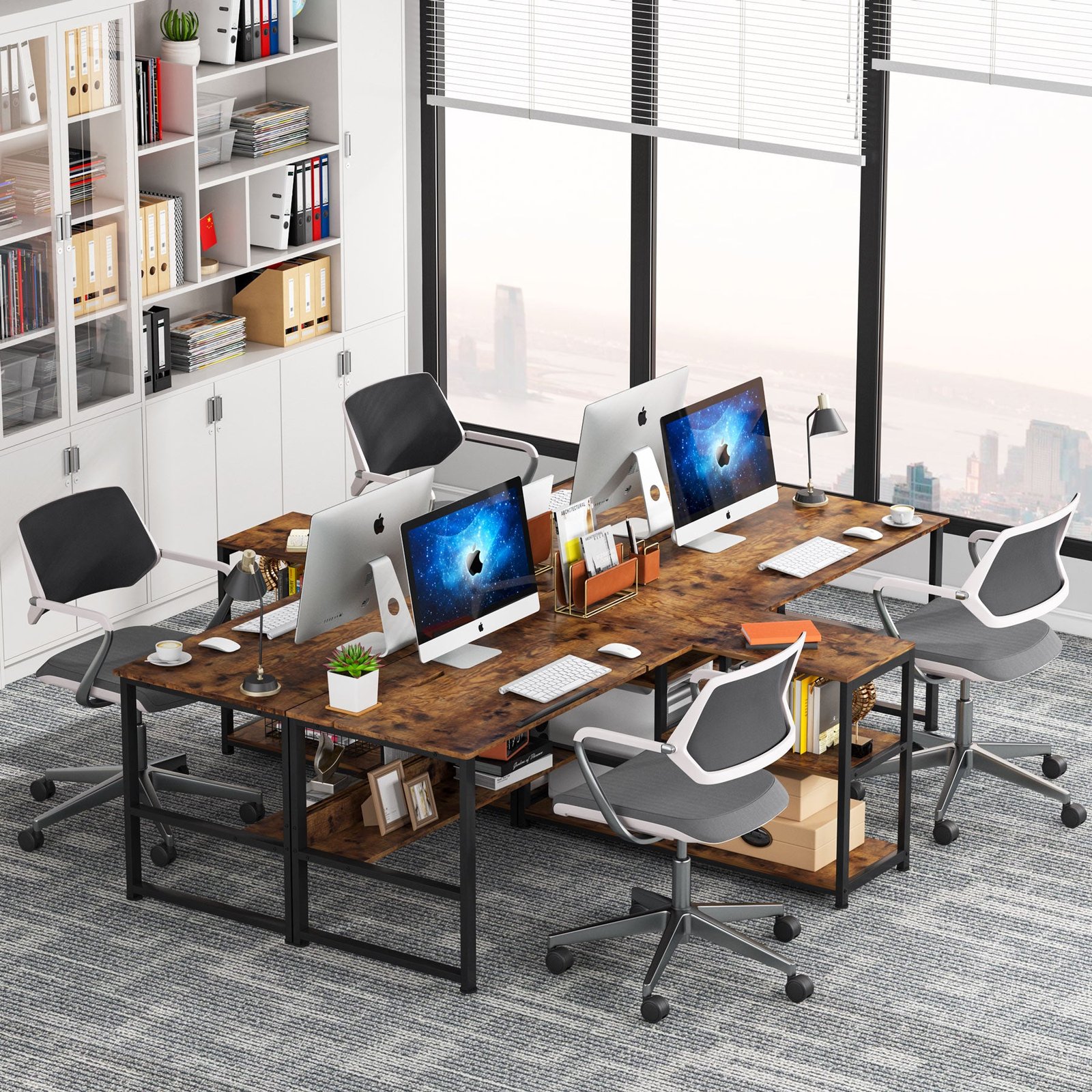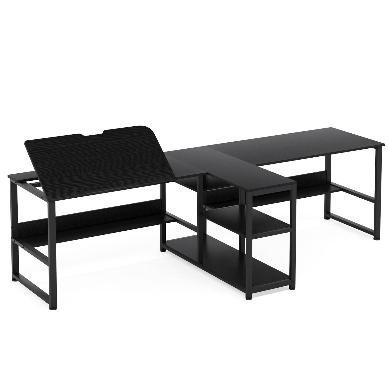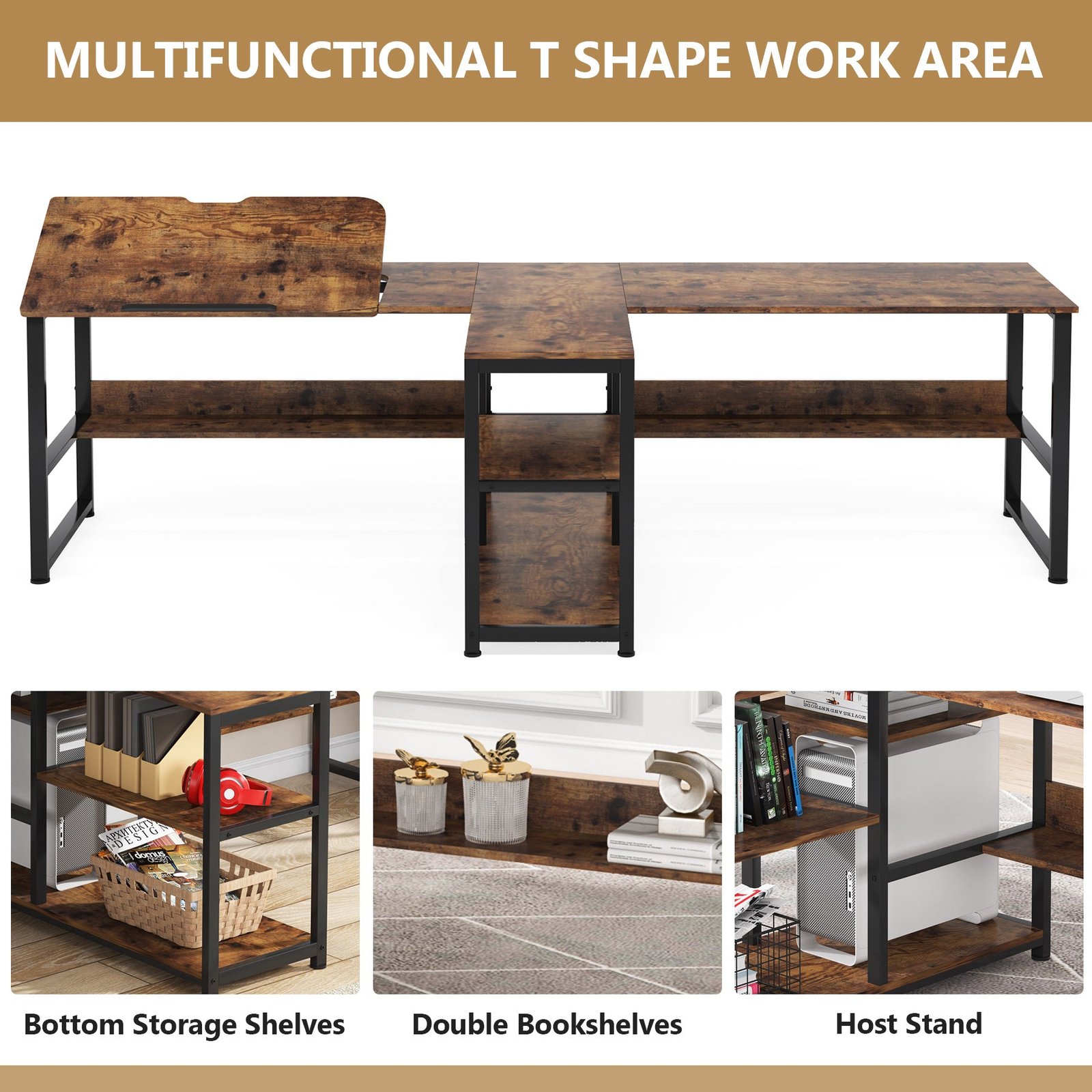 Two Person Desk, 94.5?Computer Desk with Shelves and Tiltable Tabletop