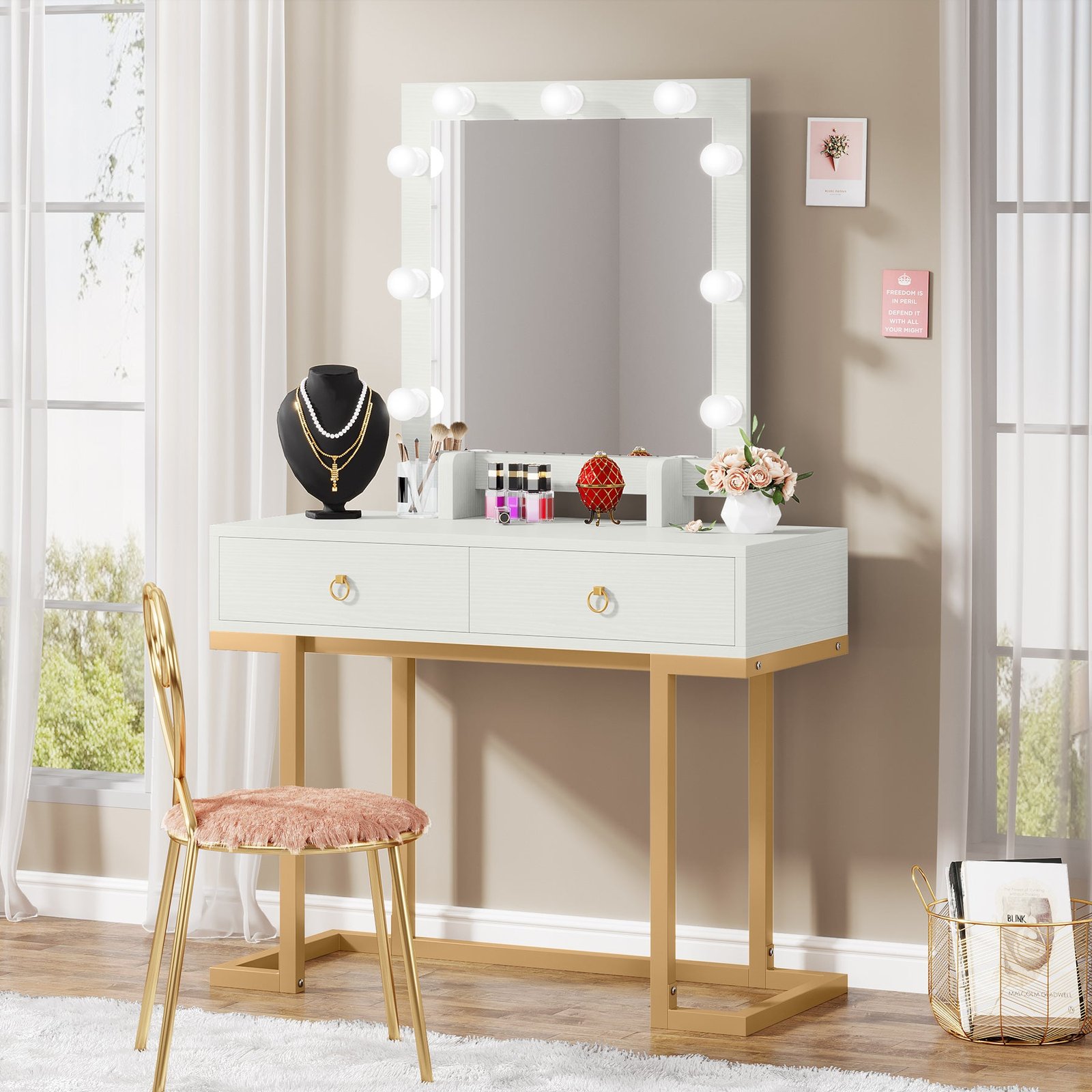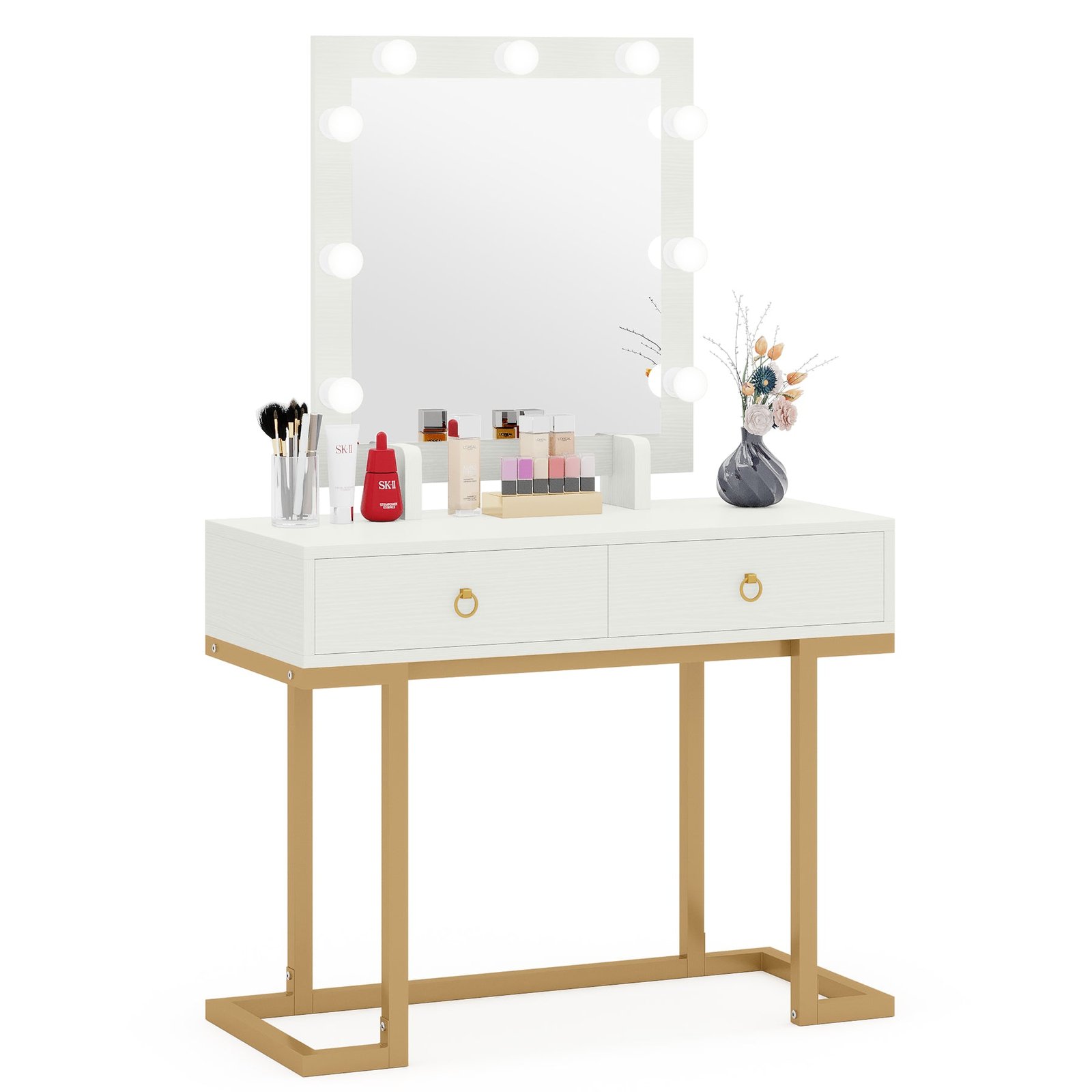 Vanity, Modern Makeup Table with 2 Storage Drawers & Lighted Mirror