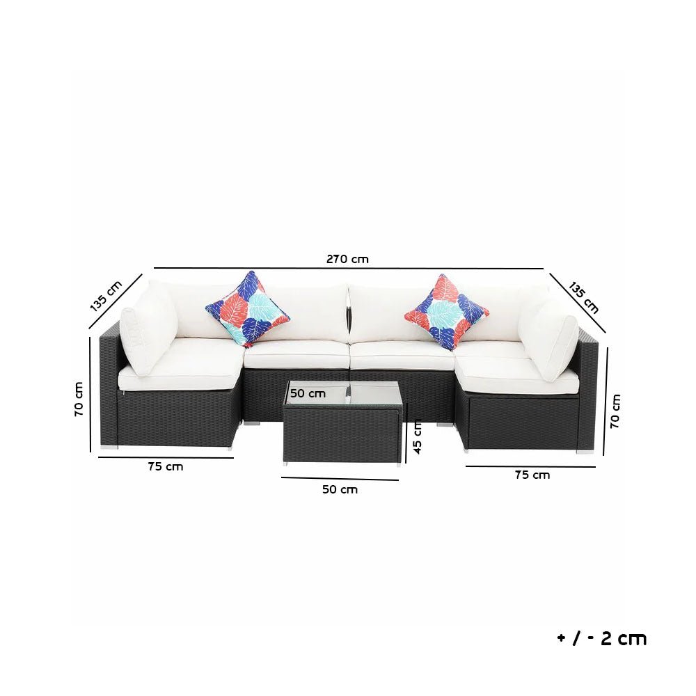 Create a comfortabcorner in your outdoor area. The modern design with the treated pure rattan structure of this piece of furniture is sure to decorate your garden, patio, or terrace. The set consists of a corner chair, 4 shoulderless chairs, a table, a one-shouldered chair, and all the components of the corner. They can be combined or used separately to make the most of space, ensuring you have side space for your drinks.